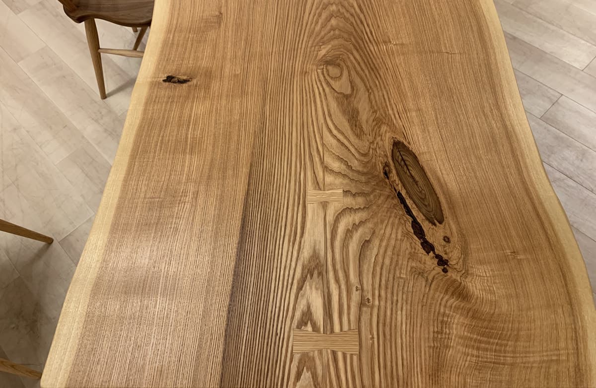 「耳付き(みみつき)テーブル」とは原木の皮の部分を残し、自然が生み出した