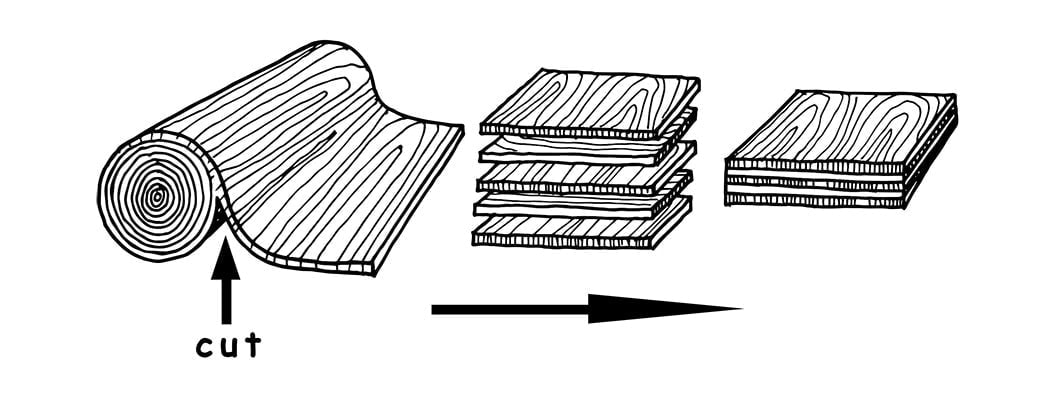 「突板」とは、丸太を大根の桂剥きのように0.2 ミリほどに薄くスライスしたシートを、