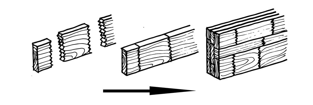 幅の細い一枚板を幅方向に対してのみ横に接ぎ合わせていくものを「幅接ぎ集成材」
