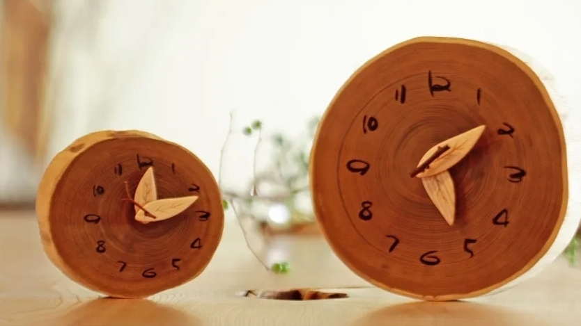 針は葉っぱの形。秒針は欅の小枝そのまま