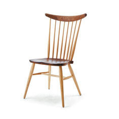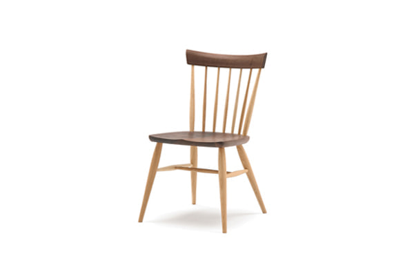 KURA WINDSOR(クラ・ウィンザー)のチェア・シリーズは、デザイナー岩倉榮利と高山の家具挽物技術との出会いに始まり、現代日本における新しいウィンザー・スタイルを「リ・デザイン」という手法によって作り上げました。笠木と挽物の支柱、H字型の貫をつけた脚を厚い木座板の上面、下面に正確に取り付ける技術を土台に、現代的かつ日本的な(パーツのモデュールやバランス、素材の扱いなどの)編集作業を通して、独自の美しさを獲得しています。そこには、一方に新しい素材とそれを活かす斬新な形を創造するものづくりの方法があり、一方で昔から引き継がれてきた様式や技術を時代、地域性や使 う人々の特性に従って変化させていくことも、ひとつのデザイン手法であるという提言が見てとれます。